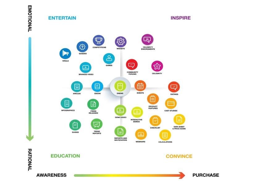 Combinando diversi tipi di contenuti di marketing è possibile costruire una Content Strategy articolata e coerente, che alterna storytelling emozionale, informazione e formazione. In questo modo la comunicazione diventa più efficace, perché segue da vicino i bisogni del pubblico e ne agevola il processo di scelta e di acquisto.